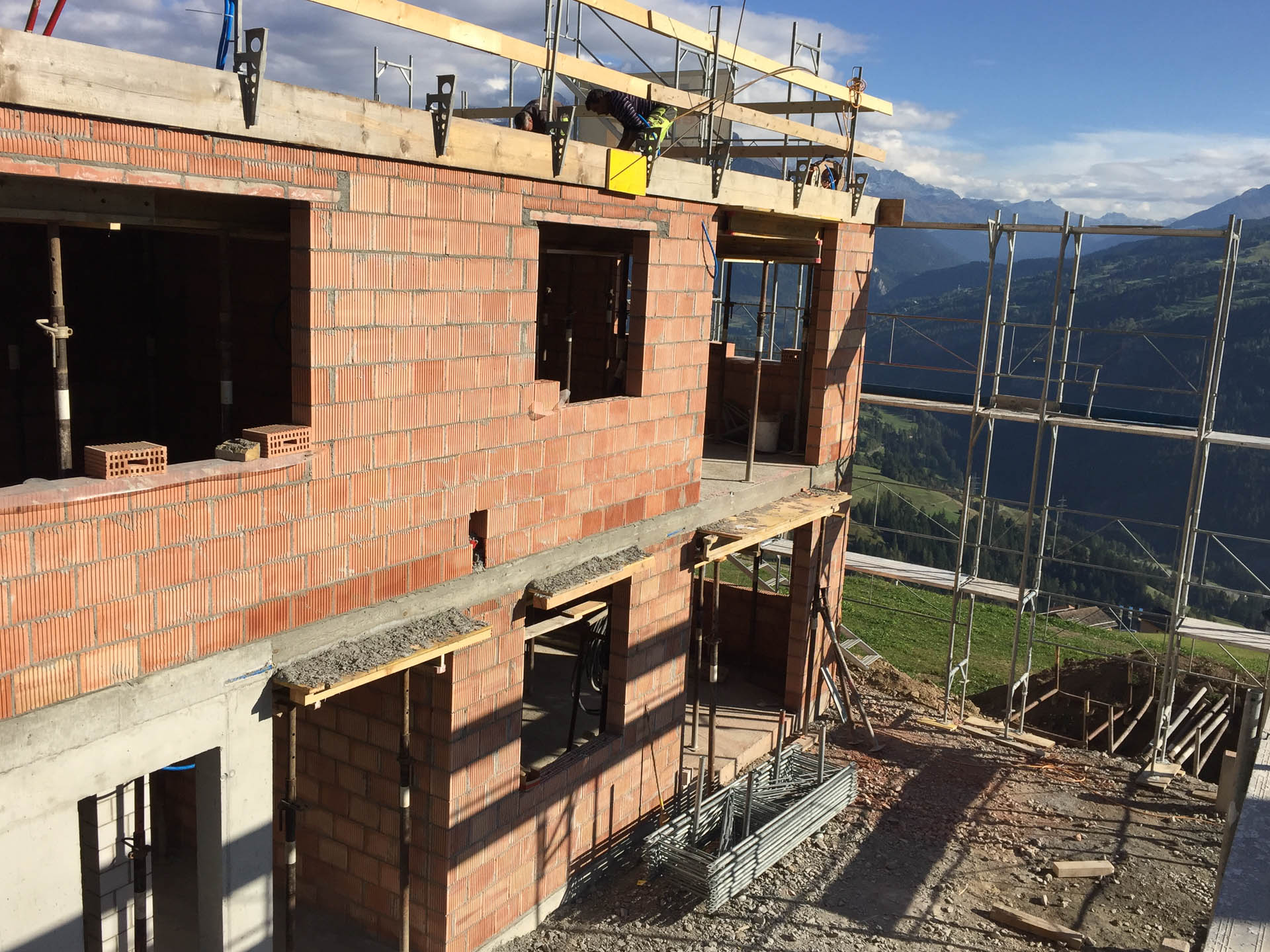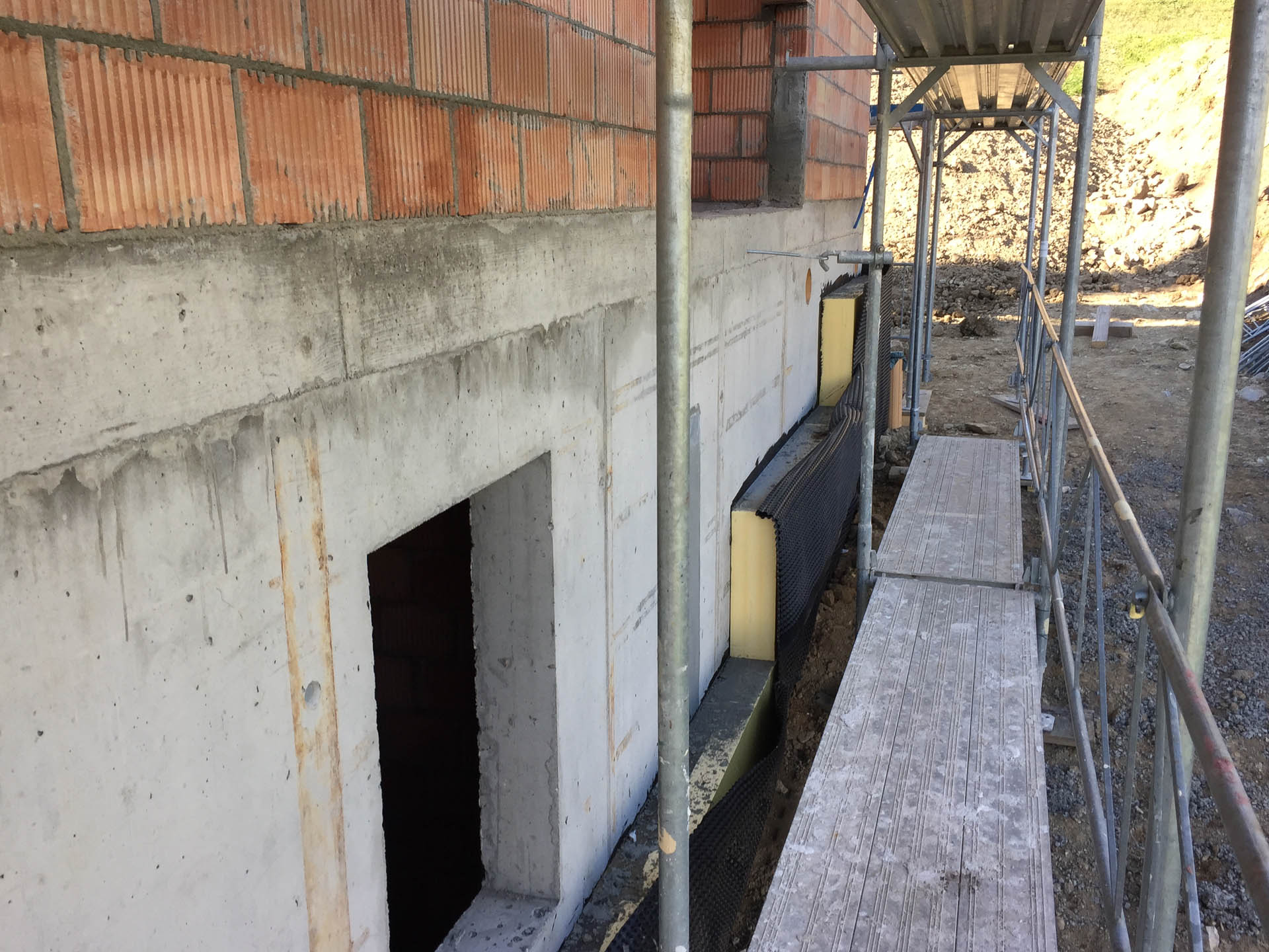 A masszív szerkezetű családi ház egy olyan hegyoldalban épült, mely évszázadok óta csúszásban van. Évi pár cm-t csúszik a terület a völgy felé, ezért ennek megfelelően válaszottuk meg az alapozását is. Az építést talajcserével kezdtük, majd közel fél méter vastag misapor habüveg teherhordó és hőszigetelő réteg került a vasbeton lemezalap alá, biztosítva a csúszás során fellépő süllyedések kiegyenlítését.